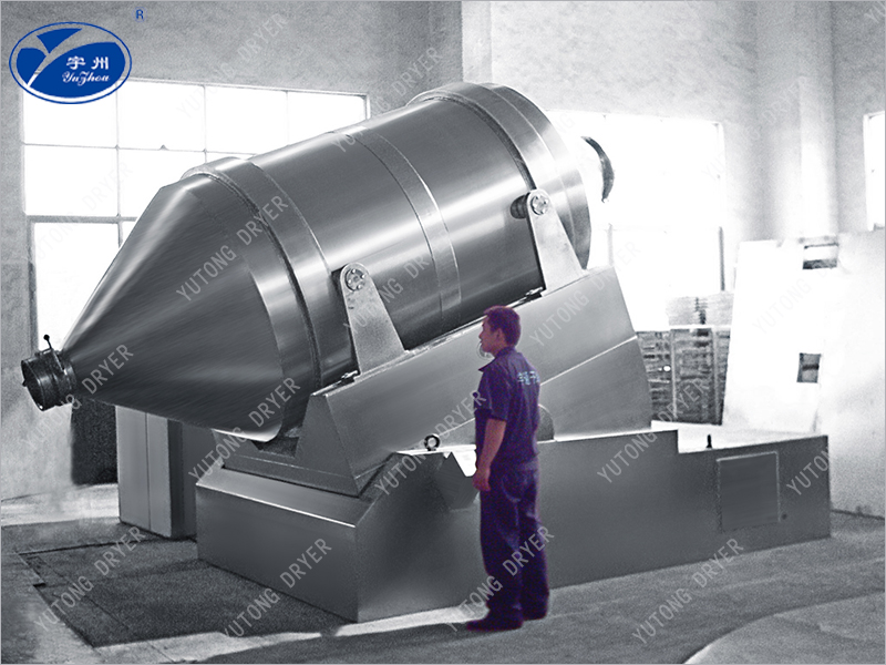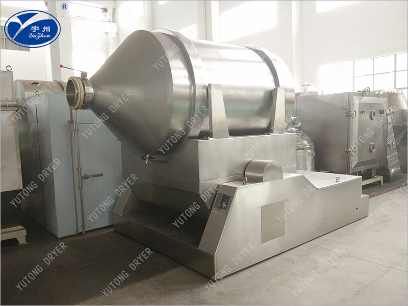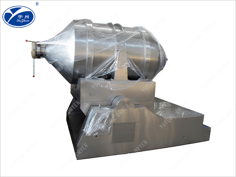 EYH二維混料機的轉筒可同時進行二個運動,一個為轉筒的轉動,另一個為轉筒隨擺動架的擺動。被混合物料在轉筒內隨轉筒轉動、翻轉、混合的同時,又隨轉筒的擺動而發生左右來回的摻混運動,在這兩個運動的共同作用下,物料在短時間內得到充分的混合。EYH二維混料機適合所有粉、粒狀物料的混合。