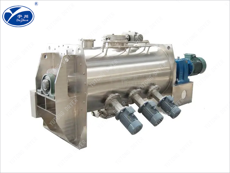 應(yīng)用于化工、醫(yī)藥、農(nóng)藥、獸藥、食品、飼料、飼料添加劑、塑料等行業(yè)固-固(粉體與粉體),固-液(粉體中添加少量液體)的混合以及造濕粒、干燥等復(fù)合工藝;尤其適用于粘性或膠狀添加劑的混合。