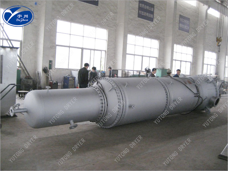 沸點的降低,增大了與熱介質的溫度差;呈湍流狀態的液膜,降低了熱阻;同時抑制物料在壁面上結焦、結垢,也提高了蒸發筒壁的傳熱系數;因此高效旋轉薄膜蒸發器的意傳熱系數可高達8000KJ/h.m2.℃,因此其蒸發強度很高。