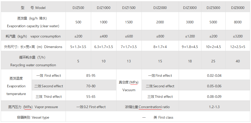 2、本濃縮器采用三效同時蒸發,二次蒸汽得到反復作用,既節省了鍋爐的投資,又節約能源消耗,耗能與單效濃縮器相比降低70%,不到一年用戶可從節能費中收回本濃縮的全部投資。