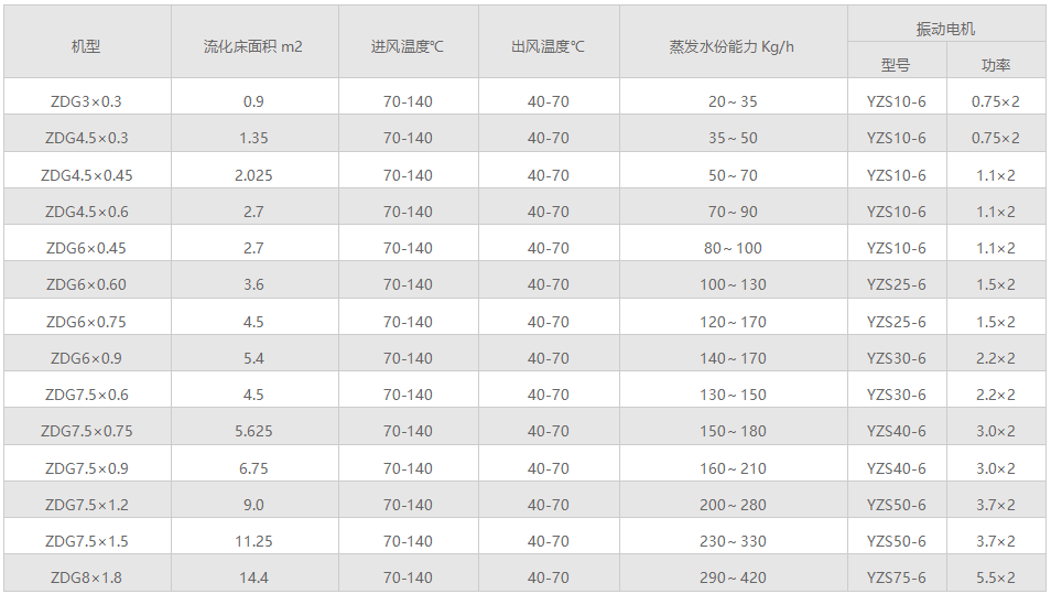 ZDG系列振動(dòng)流化床干燥機(jī)廣泛適用于化工、輕工、醫(yī)藥、食品、塑料、糧油、礦渣、制鹽、糖等行業(yè)的粉料顆粒狀物料的干燥、冷卻、增濕等作業(yè)。