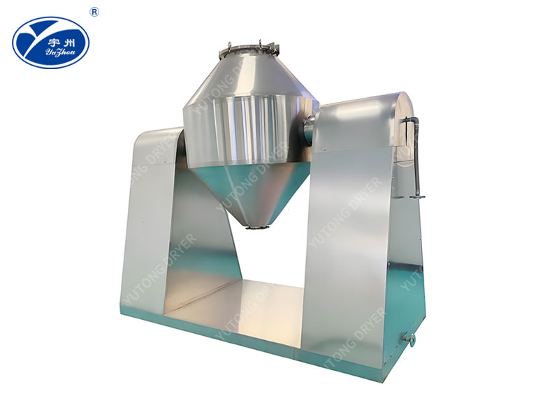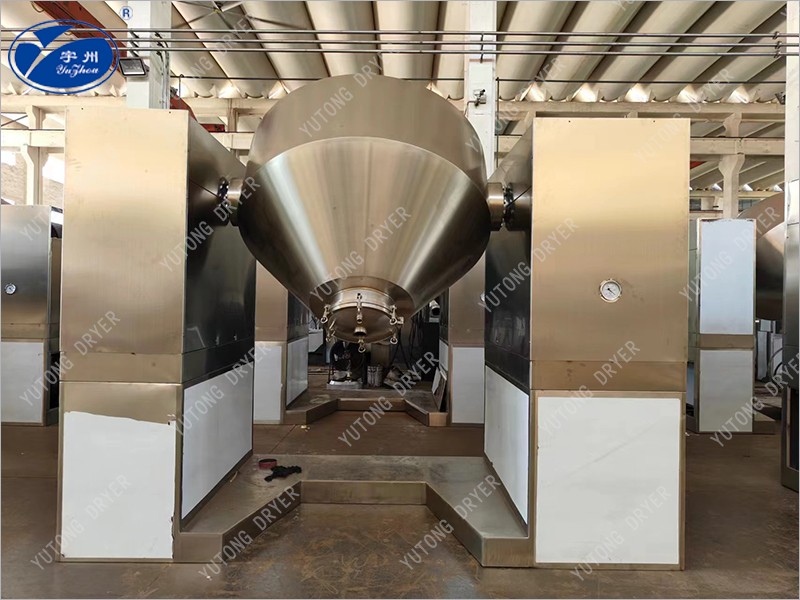 2、在動力驅(qū)動下,罐體作緩慢旋轉(zhuǎn),罐內(nèi)物料不斷地翻轉(zhuǎn),從而達到強化干燥的目的。