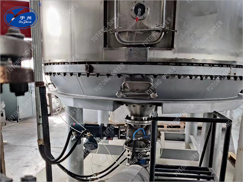 Сухие материалы, выходящие из нижнего слоя, могут быть упакованы непосредственно. Производственная мощность сушки может быть увеличена за счет добавления вспомогательного оборудования, такого как нагреватели ребра, конденсаторы для рекуперации растворителей, мешковые фильтры и вентиляторы. Для термочувствительных материалов растворитель может быть легко переработан и может быть использован для пиролиза и реакции.
