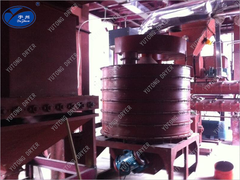 Влажный материал поступает в спиральный слой из верхнего входного отверстия, и под действием периферической ударной силы и гравитации материал прыгает вверх и вниз по спиральному слою до выхода из нижнего слоя; В то же время чистый горячий воздух поступает со дна спирального слоя, полностью передает теплоноситель с материалами, распределенными на кровати, и выходит через верхние вентиляционные отверстия, тем самым достигая цели сухого влажного материала.